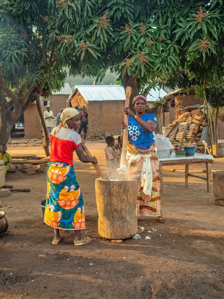 We will make our final visits in the area before continuing our journey to the Atakora Mountains, the highest point in Benin, where the landscape transforms into mountains and small valleys inhabited by various animist ethnic groups, particularly the Somba — known as adobe craftsmen.